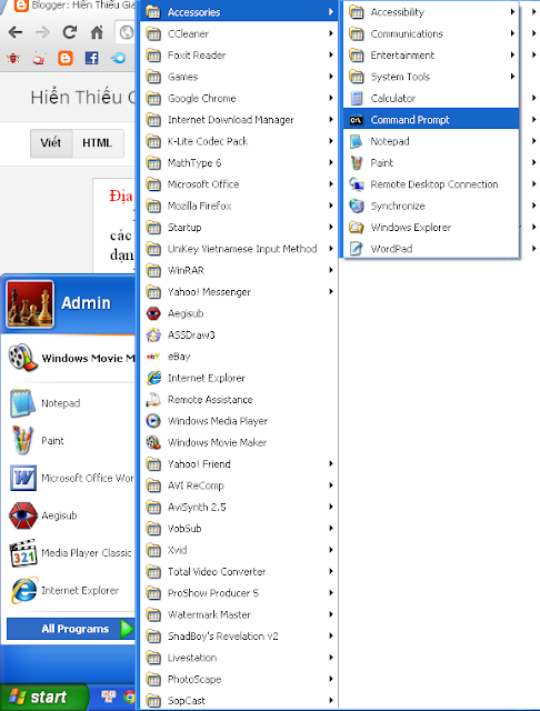 - Để tìm IP của một web bất kì ta sử dụng công cụ Command Prompt của Windows. Sử dụng công cụ trên bằng cách vào start->program->Accessories->command prompt.